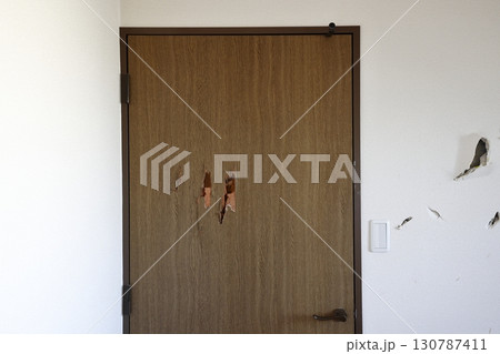 穴の開けられた壁とドア