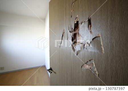 穴の開けられたドアと壁