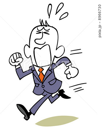 青ざめた顔で必死に走る私服の若い男性(全身)