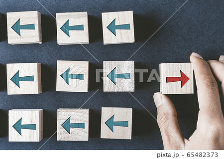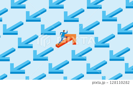 多くの矢印に反逆して、逆に進む単独の矢印。多数派に逆らう少数派を表す抽象的なコンセプト。