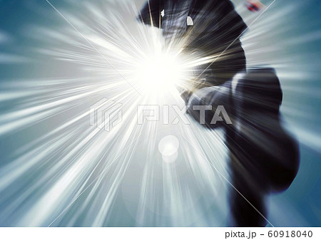 逆光とゴールを目指して走るビジネスマンの後ろ姿
