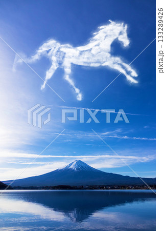 年賀状素材 「逆さ富士」と「馬の形の雲」