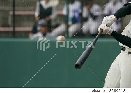 野球の試合中にピッチャーの投げた球を打つ瞬間の右バッター