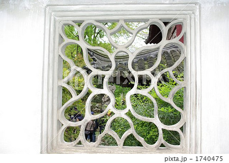 中国 蘇州の古典庭園の特徴のひとつ「漏窓」(透かし窓)