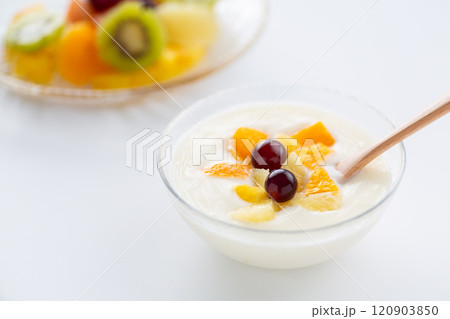 フルーツヨーグルトとカットフルーツ