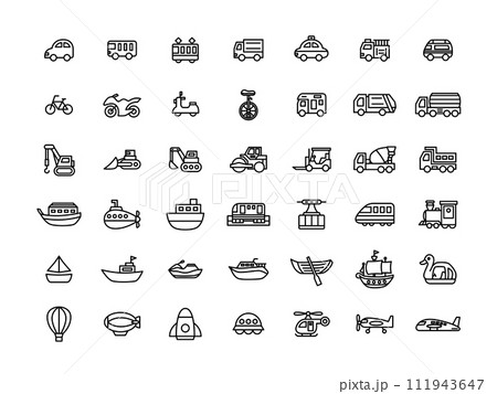 様々な乗り物のステッカーアイコンセット(背景なし)