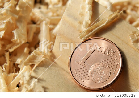 A new coin in the carpenter's workshop. A rare eurozone coin. Andorra 1 euro cent.