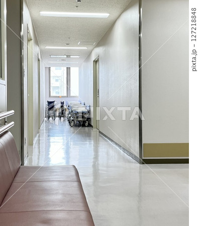 A hospital you can fell secure in. An empty passage way inside of a hospital.