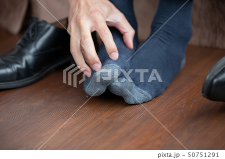 Close upmMan suffering from hemorrhoids, anal pain. painful spot highlighted in red.