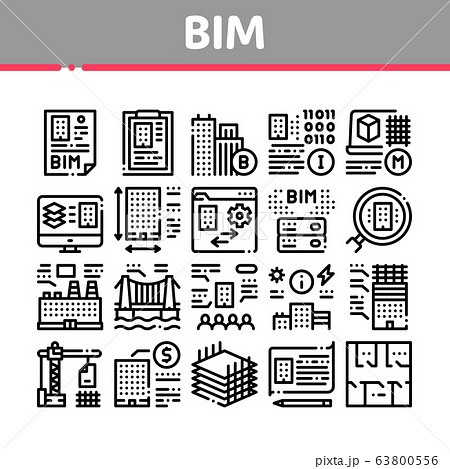 Bim Building Information Modeling Icons Set Vector