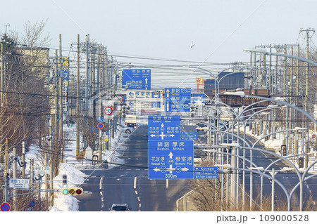 冬の北海道根室市・連なる道路標識 / Nemuro, Japan