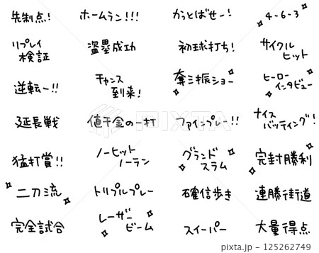 野球用語を散りばめた文字セット・二刀流・ホームラン・かっとばせ