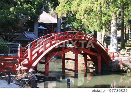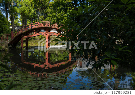 日本 三重県伊勢市朝熊町岳にある金剛證寺の連間の池に架かる連珠橋