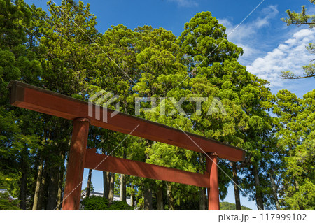 日本 三重県伊勢市朝熊町岳にある金剛證寺の連間の池に架かる連珠橋の前に建つ鳥居