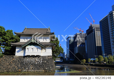 皇居 巽櫓とビル群