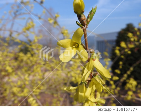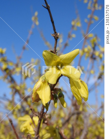 若くフレッシュなレンギョウの花