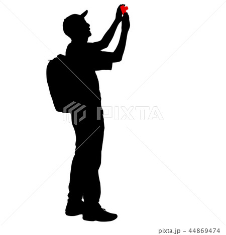 Silhouettes man taking selfie with smartphone