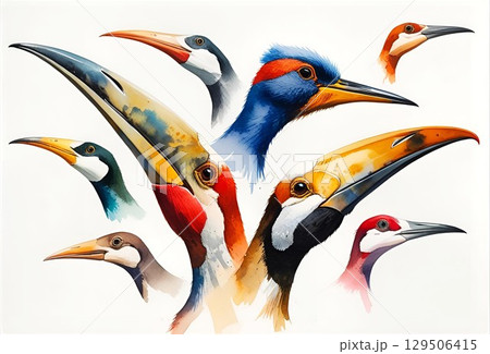 たくさんのカラフルな鳥類が描かれたイラスト