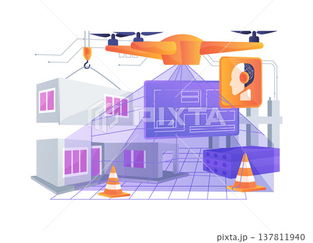 AIがグローバル社会の基盤となりビジネスや持続可能環境の問題解決未来を支える。クレーンは創るイメージ
