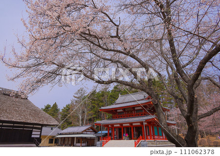 北国の遅い桜の開花 北国岩手に春が来た 日本画風色調 町中が桜色に煙るとき