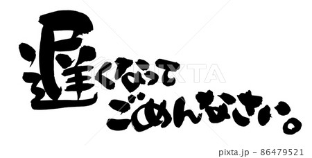 筆文字素材の手書きの【遅くなってごめんね】墨で書いたイラスト