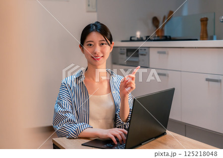 夜遅くまで在宅勤務をする若い女性