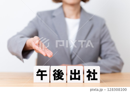 11時出社のブロックとスーツを着たミドル女性ビジネスウーマン
