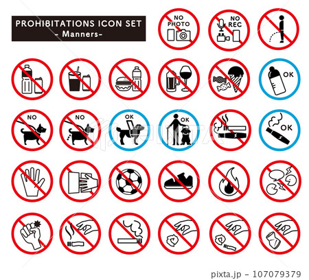 マナーに関連する「禁止」「注意」「警告」のアイコンセット(濃い色)