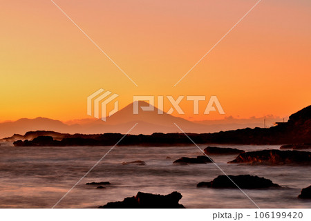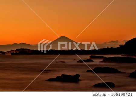 三浦半島 冬の城ヶ島から富士山の夕景 長秒露光