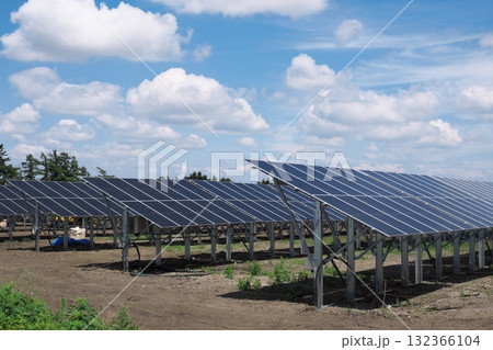 ソーラーパネルと夏空に浮かんだ綿雲