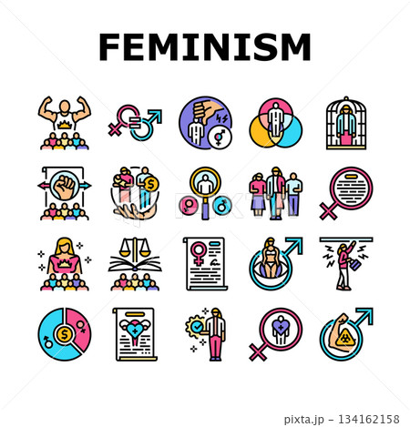 feminism patriarchy gender icons set vector