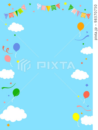 青空とガーランドと紙吹雪と風船の背景イラスト