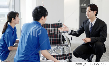 介護用品について話す介護士と福祉用具専門相談員