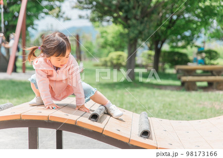 公園の遊具で遊ぶ・運動する子供(女の子・幼児・園児)