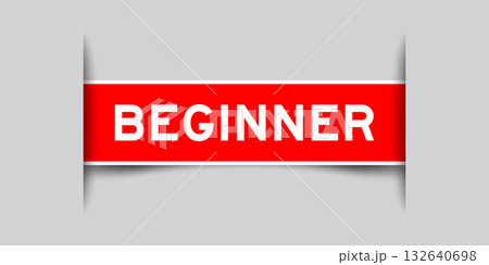 Red color inserted label with word beginner on gray background