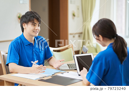 介護プランについて話し合う介護士