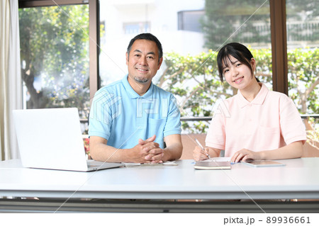 介護士の笑顔の男女スタッフ