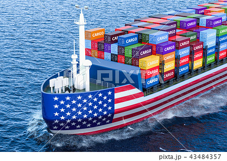 American freighter ship with cargo containers
