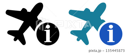 飛行機とインフォメーションマークの旅行案内アイコン