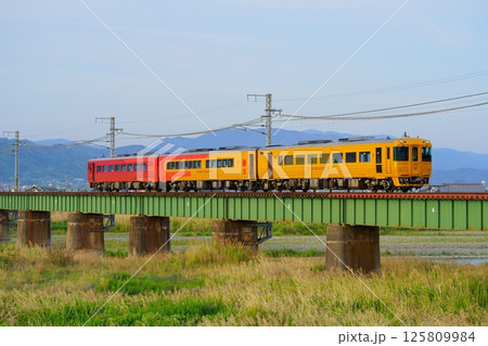 重信川橋りょうを渡る特急伊予灘ものがたり