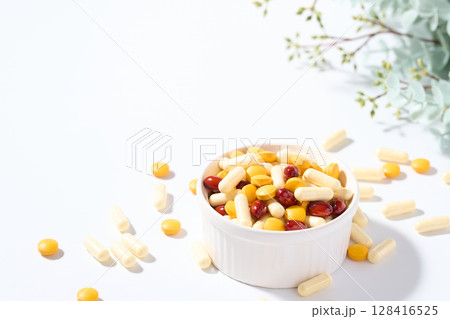 大量のカプセル錠剤 サプリメント