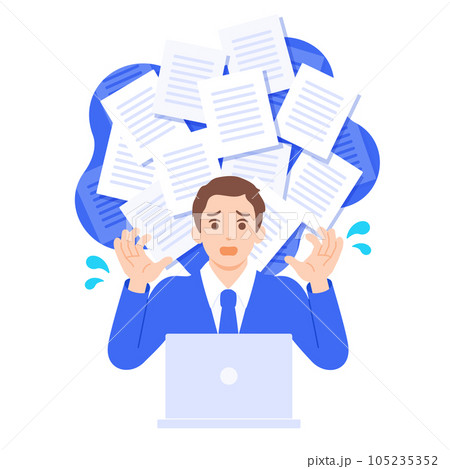 膨大なデータをどう処理していいのかわからないビジネスパーソンのベクターイラスト素材。