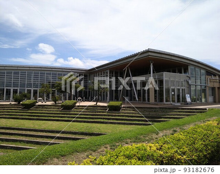 道の駅しょうなんの直売所棟「てんと」と芝生ひろば