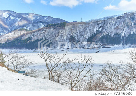 3月岩手県西和歌町錦秋湖雪景色