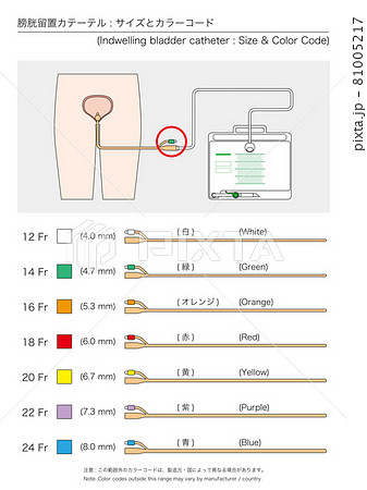 【医療】膀胱留置カテーテルのサイズとカラーコード (縦)
