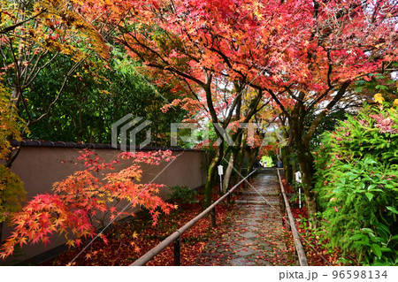 錦秋に歩く京都市北区の光悦寺参道が美しい