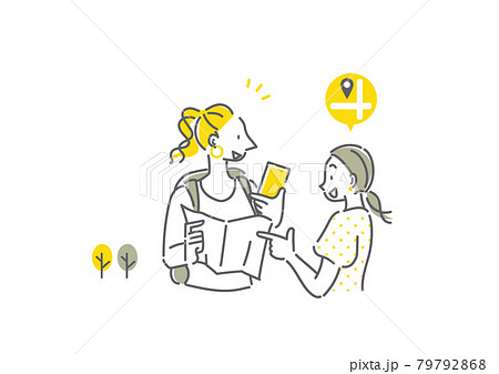 道がわからない外国人女性を道案内する日本人女性