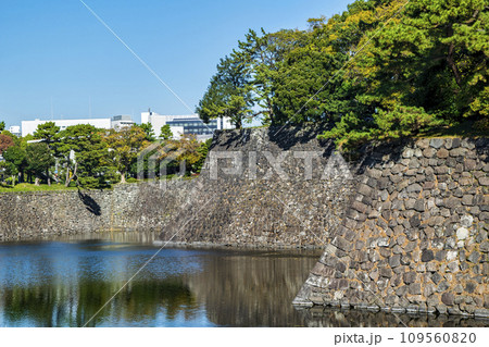 皇居 乾通り 乾濠越しの江戸城本丸の石垣【東京都千代田区】