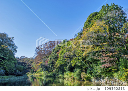 見事に色づいた紅葉時期の下道灌濠 東京都千代田区皇居