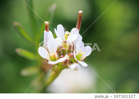 自然 植物 早春、土手に咲く小さな花。ミチタネツケバナ